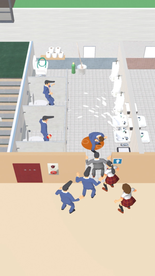 游戏中玩家只能上厕所小便,利用场地环境与敌人战斗。