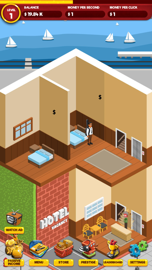 连锁酒店游戏中有很多不同的酒店房间,都能进行升级,升级后的酒店能帮助你吸引更多的顾客,每天上线还能签到领取金币。