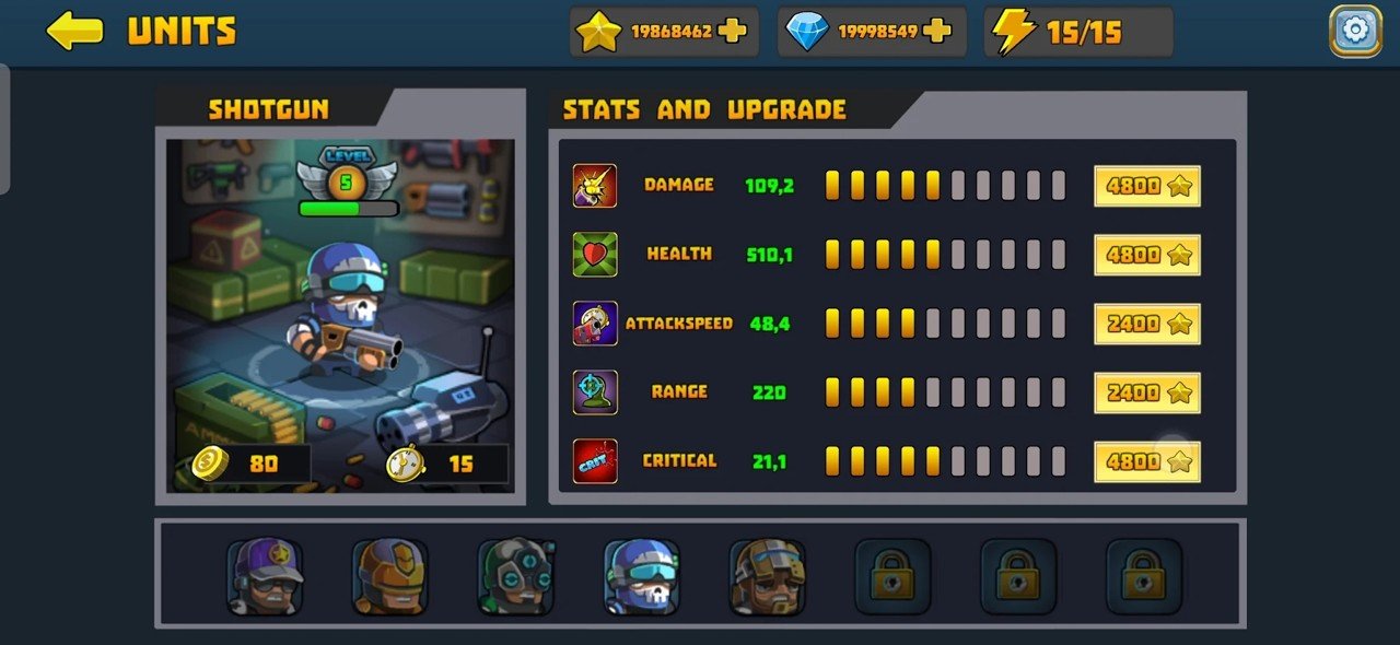 2.带领前线阻挡丧尸前进,减少对身后队友的伤害。完成任务别忘了获得星星和宝石的奖励。获得星星可以增加士兵的力量。