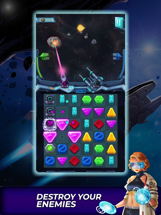 2.在这里体验三消类手游,解锁更多射击装备,太空探险总是令人兴奋的。