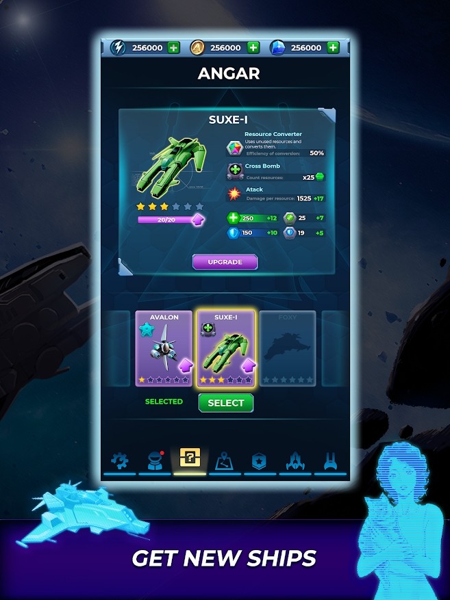 2.游戏里还能玩到非常简单的操作,看到很好看的画面,游戏里玩家还能解锁各种不同的飞船皮肤。