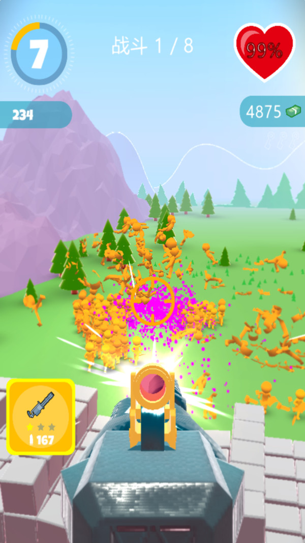 大量的敌人全部击败,十分过瘾,还有大炮、导弹等多种武器可以使用。