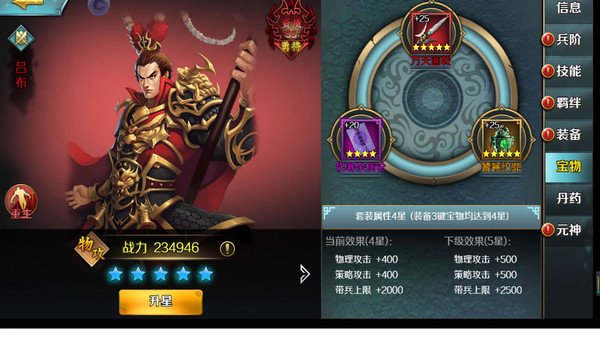 获取完装备之后,并不代表你就可以所向披靡了,武将需要升星,装备自然也要升级。玩家可进入武将界面,选择对应的装备进行提升,从而大幅度的提高高倍的属性。但是,提升装备需要消耗一定的秘银,你就可以通过世界流寇任务得到相应的秘银。