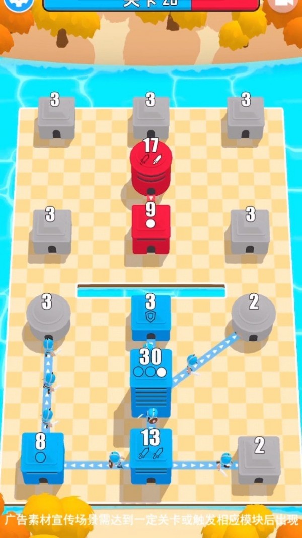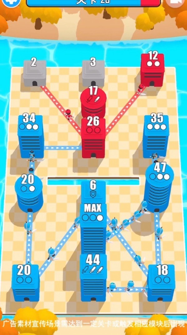 这款攻城乱斗有很多不同的关卡玩家可以进行体验,每一关中都有很多的障碍会出现在玩家面前,玩家需要不断的突破各种难关,操作非常的简单,玩家可以很好的上手体验游戏。