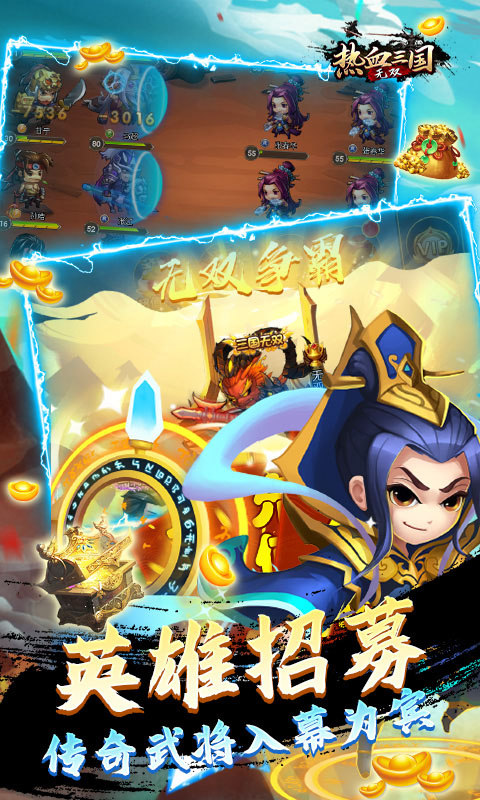 热血三国无双是一款策略卡牌类手游,游戏以三国为主题,在这里有很多三国名将都是大家熟悉的,游戏中加入很多元素,在这里还能和其他武将一起组合发动合击绝技,打出巨大的伤害,来对你的对手造成群体战斗伤害,游戏中所有的战斗阵容都可以自己来进行搭配,还有各种阵型,所有的一切玩家都能一手掌握。