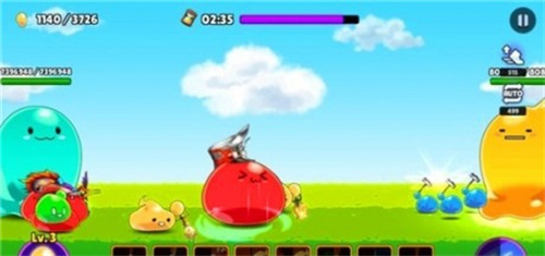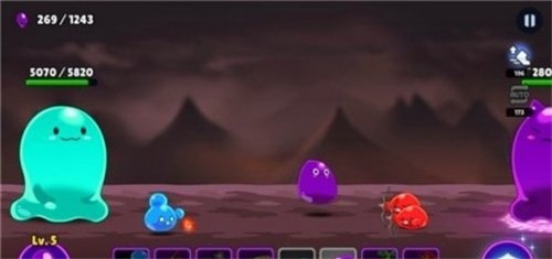 1.解锁各种不同颜色的史莱姆角色,一起组建自己的队伍,