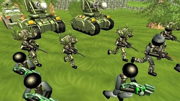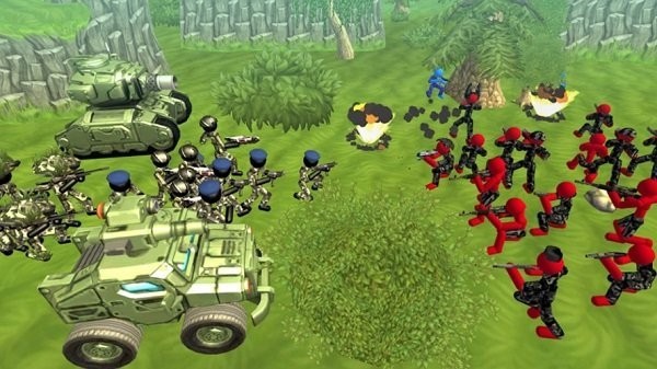 2、各种不同类型的火柴人士兵非常多,而且还有坦克、火箭炮等等武器装备可以调用。