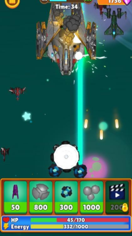 1.游戏中点击战机来回移动,在对抗模式中使用许多强大的科技武器来阻挡敌人的攻击。
