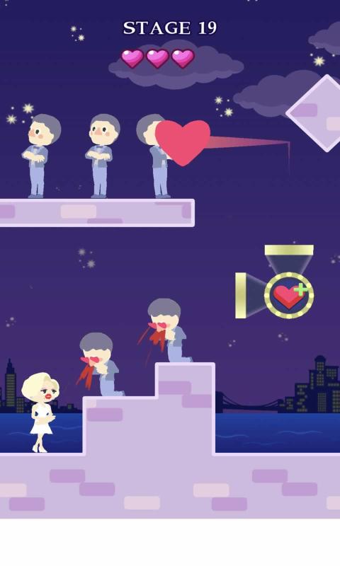 亲亲射击是一款非常好玩的女性向射击游戏,游戏采用了非常有趣的竖版2D画风,玩家将在游戏中化身为女神,作为女神身边当然是少不了备胎的,但是备胎们还没有发现你的美该怎么办呢?那就赶快来利用自己的丘比特之心俘获他们吧!