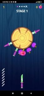 1、玩家需要把所有的刀都扔到转盘上,还有苹果要收集到转盘上。