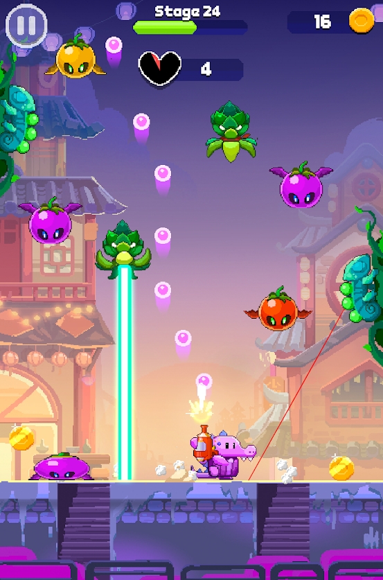 射击大师食物战游戏中有多的关卡等你来挑战,每一个官气的最后会有强大的boss玩家需要升级你的战斗装备哦。