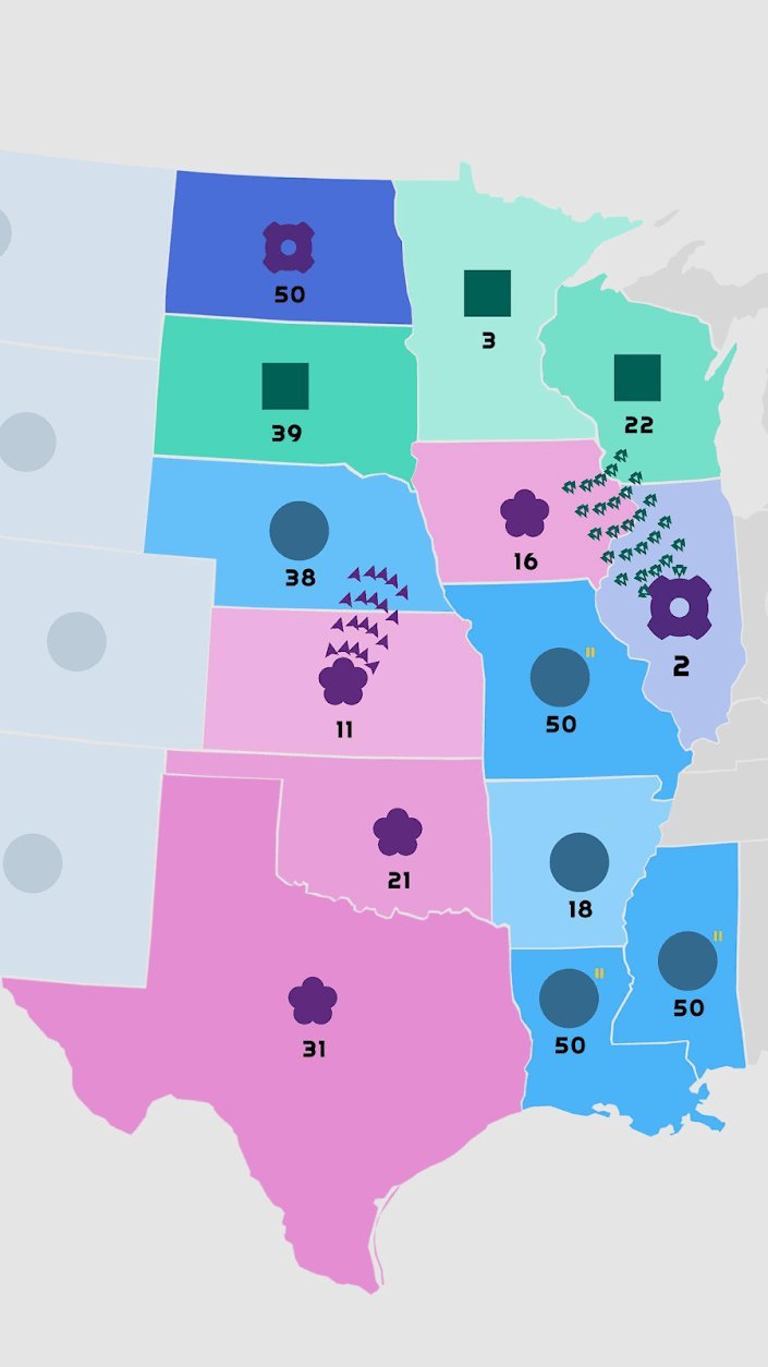 大国冲突游戏中有各式各样的国家势力可以选择,简约清新的画风玩起来也有比较特殊的体验。