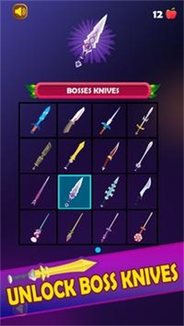 1、一款非常有趣的飞刀玩法手游,在游戏中,你需要使用飞刀精准击中指定物品