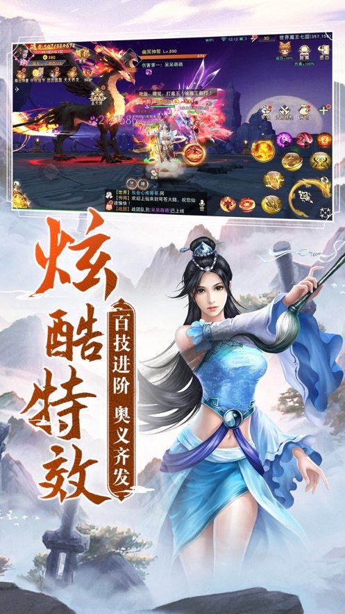 2、比武论道,帮派争霸,单人竞技,阵营战场,多种战斗模式,一次满足的你的征服欲望;