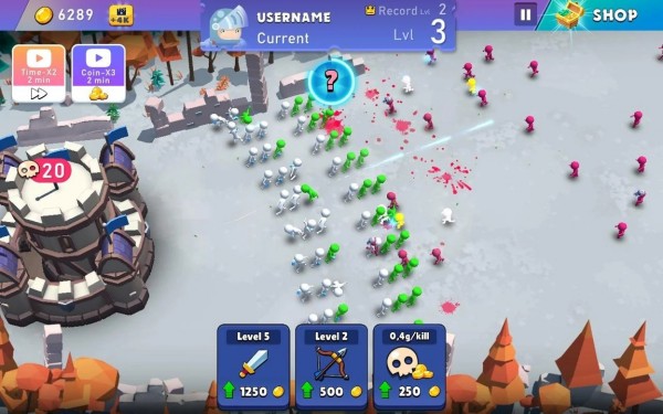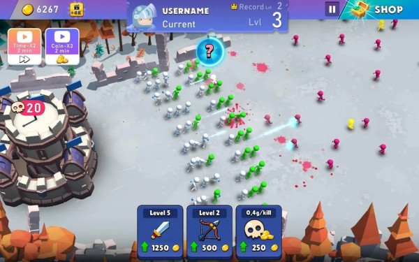 2、而在后面的战斗中,玩家只要不断的消耗金币提升属性就可以进行防御进攻。