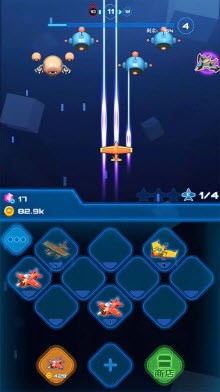 3、合并自己的小飞机,可以利用它们来进行道具的升级。