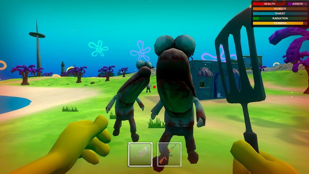 比基尼泳裤僵尸生存是一款非常经典的冒险生存类手游,游戏中以海绵宝宝中的沙滩比奇堡为主题,在这里甚至还有比奇堡,章鱼哥等等,但是这里的美好已经不复存在,因为一种辐射病毒的感染导致这里的伙伴都变成了僵尸,玩家需要时刻小心面对僵尸的攻击入侵,游戏中会有各种装备道具等你来解锁哦,感兴趣的小伙伴来96u下载吧。
