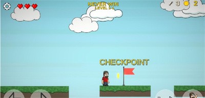 永远不会赢是一款超虐心的闯关游戏,游戏中玩家将要化身为永远不会赢的勇士,你需要打破这个诅咒,于是你踏上自己冒险的旅途,并且这里有很多的关卡供你体验,超虐心的机关和障碍都将出现,你能否打破自己永远不会赢的诅咒呢?那么就来96U下载体验一下吧!