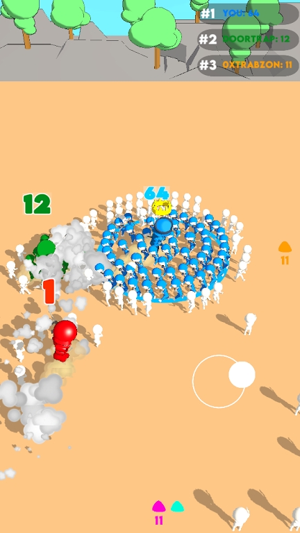 成长之战(Grow Battle)非常好玩的休闲射击游戏,可以带给玩家们非常趣味的对战体验,游戏中有不同阵营的角色,玩家需要对抗敌对阵营,游戏采用非常可爱的橡胶人角色,大家可以去不断的去扩大自己的人数,可以轻松闯过很多的关卡,各种各样的关卡都可以去选择,很多的挑战都可以去体验,快来下载吧~