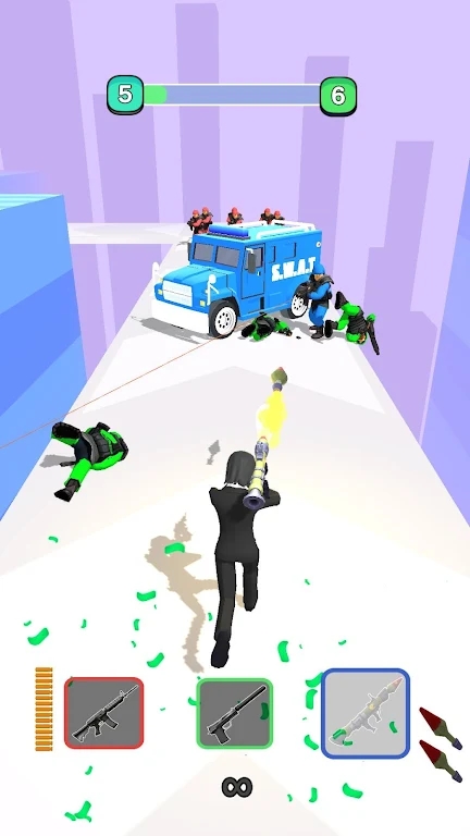 非常好玩的枪战射击游戏,可以使用的武器种类很多,通过不断射击来通关
