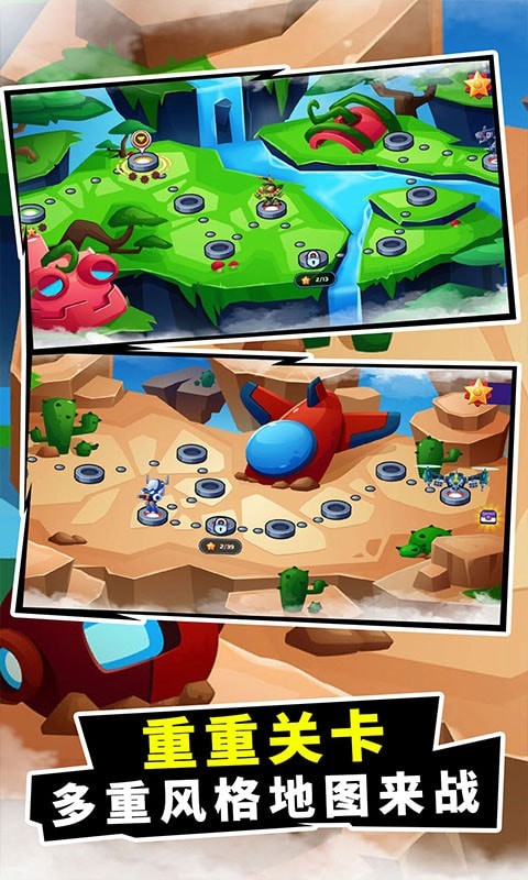 各种各样丰富的战斗角色可以去尝试,每一种机器战车都有不同的攻击能力,大家需要调整好角度才能更加精准的击中敌人,快来下载吧~
