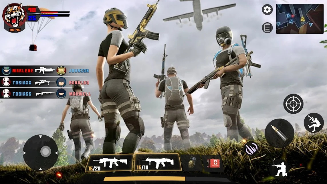 1.可以选择多种枪械,还可以使用手榴弹、烟雾弹等道具来帮助完成战术布置。