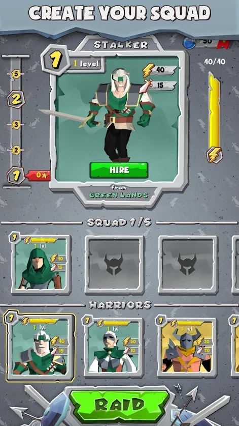 2、通过升级战士的攻击或防御等不同的属性使其能在游戏中更加长久的立于战场而不倒。