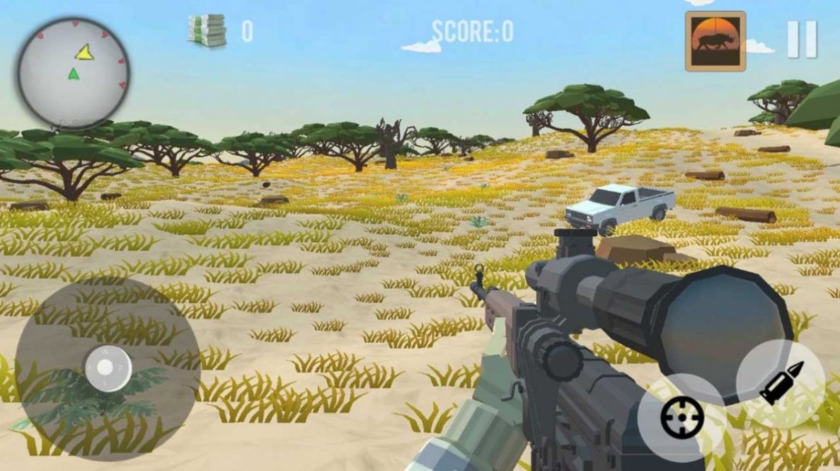 2、各种武器选择,瞄准动物们进行狩猎,提高你的枪法吧。