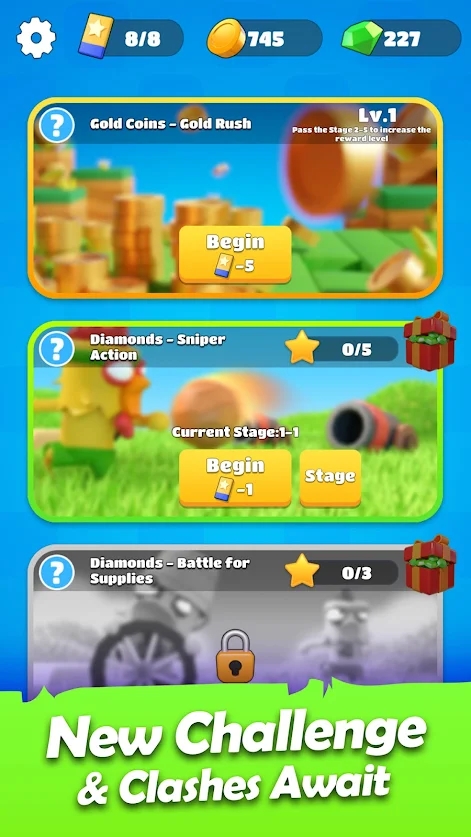 1、收集60个独特的儿女英雄卡,各种升级和武器,打造最好英雄军队。