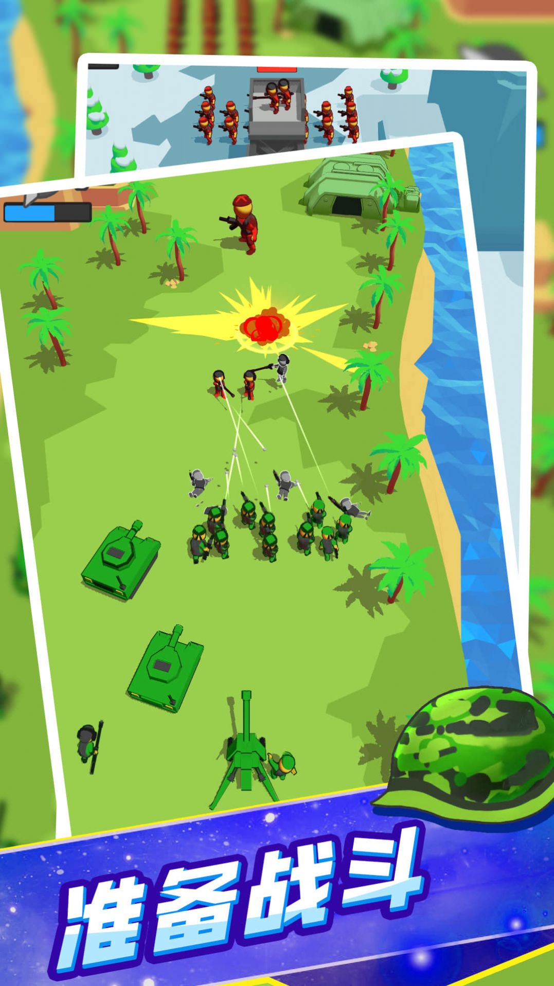 2、挑战的阵容都能升级解锁,强化你的各种兵种,并能随时组合各种策略。