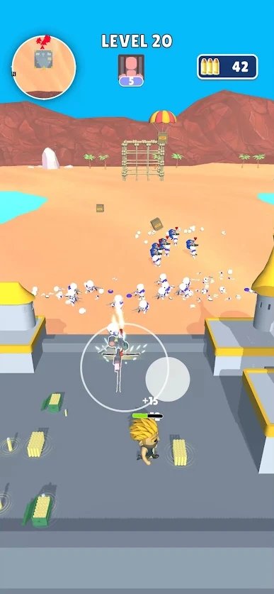 1、快乐的射击战斗游戏,激动人心的挑战活动,主动攻击和击败敌人。