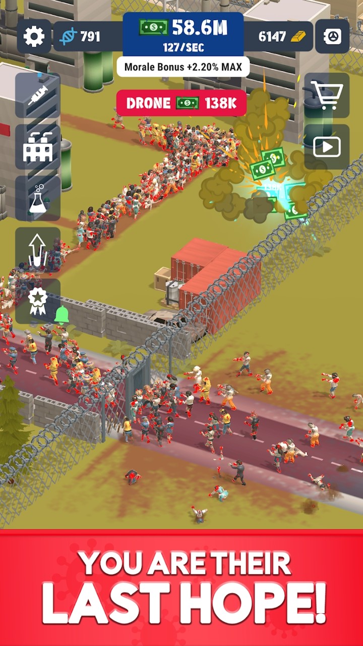 1、在这个充满僵尸的末日世界中,你需要进行不断的逃离来躲避僵尸对你的围捕。