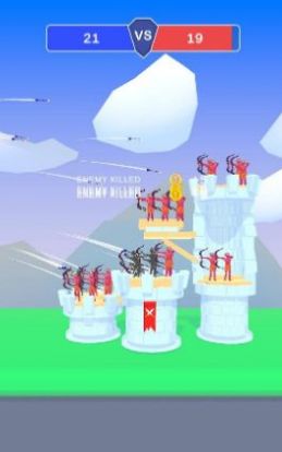 3、在盲箭堡游戏中,敌人的数量会远大于你,而且城堡更高大,所有获胜的关键就是不断提高弓箭手射箭的技术。
