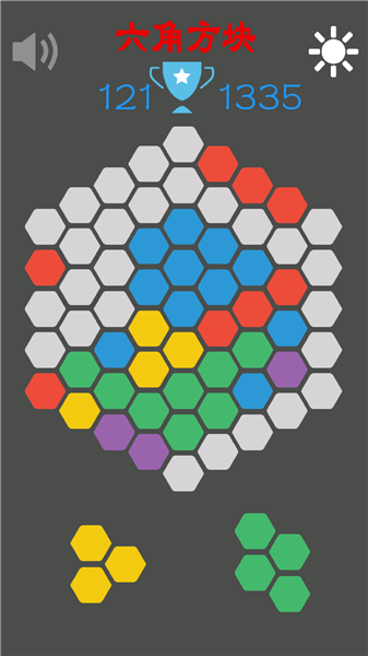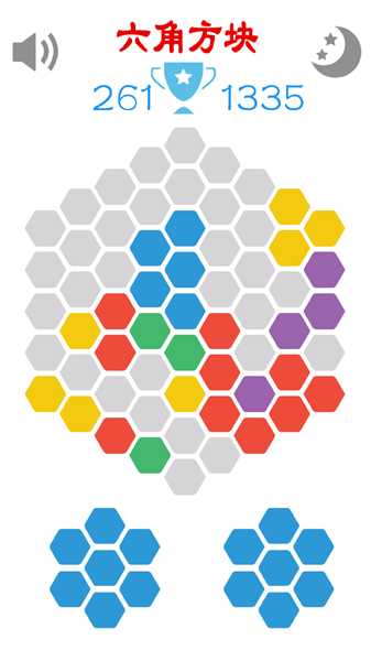 六角方块游戏中的形状各不相同,形态也是比较怪异的,所有玩家都能在里面感受到很多乐趣,而且游戏超级好玩,所有玩家都能在里面感受到很多乐趣,而且游戏超级简单,不同颜色的六边形是游戏中最常见的。将各种形状的六边形方块拖动到棋盘上,如果任意一行被填满,就可以消去。