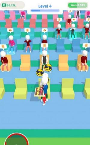 1、随意滑动屏幕控制角色移动,获取零食,跑到看台上卖给需要的观众;