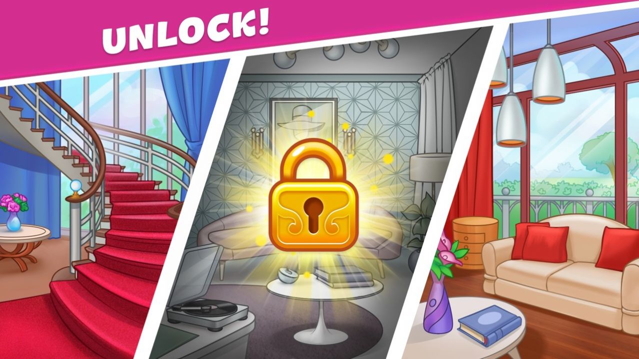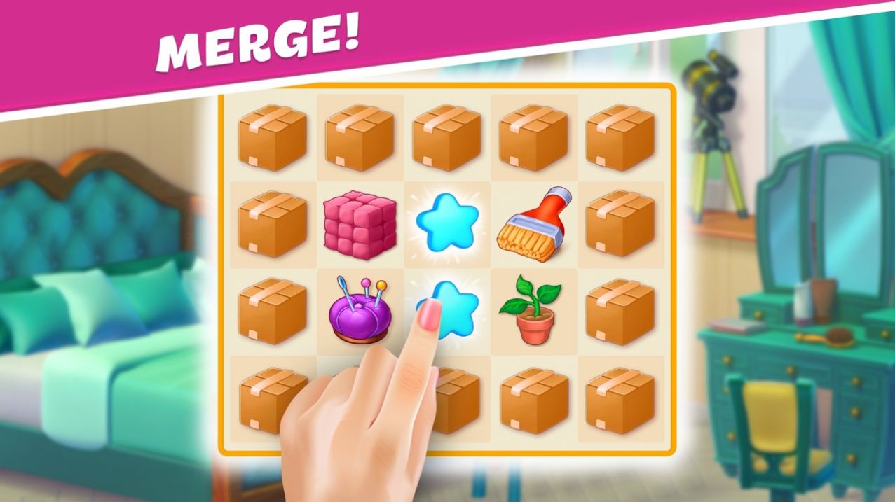 2、完成不同的消除挑战任务,解锁各种道具用来翻新我们的房屋。