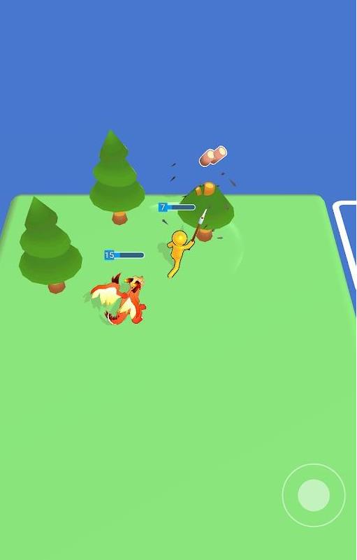 2、控制角色移动采集资源进行发展,打怪升级解救宠物,获取资源。