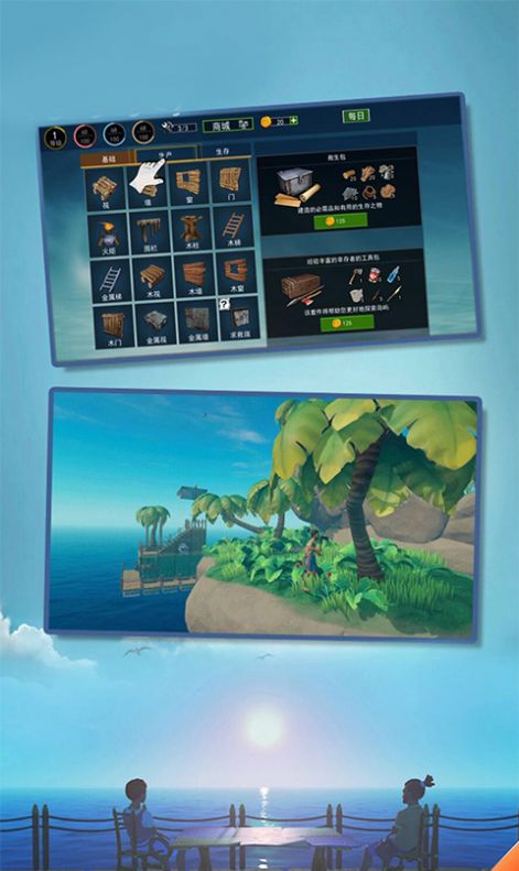 2、一片海洋的景色,你乘坐一支木法独自前行,开启冒险求生之旅;