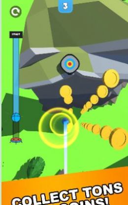 1、开始游戏,随意滑动屏幕调整箭头方向确定击球角度,放手后击球;