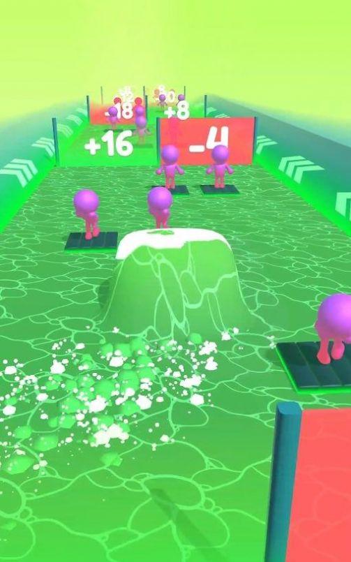 1、点击进入游戏后,左右滑动屏幕控制海啸移动,通过可以增加体积的倍数克隆通道;