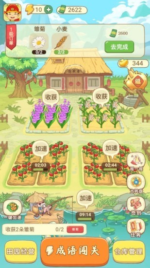 1.首先进入游戏中,给人的感觉这是充满治愈系画风的一款游戏,其中种田包含着答题完成任务的过程。