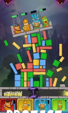 2、今天就开始你的冒险吧,保护岩石塔,用你的智慧在“翻滚塔”游戏风格中移除砖块。