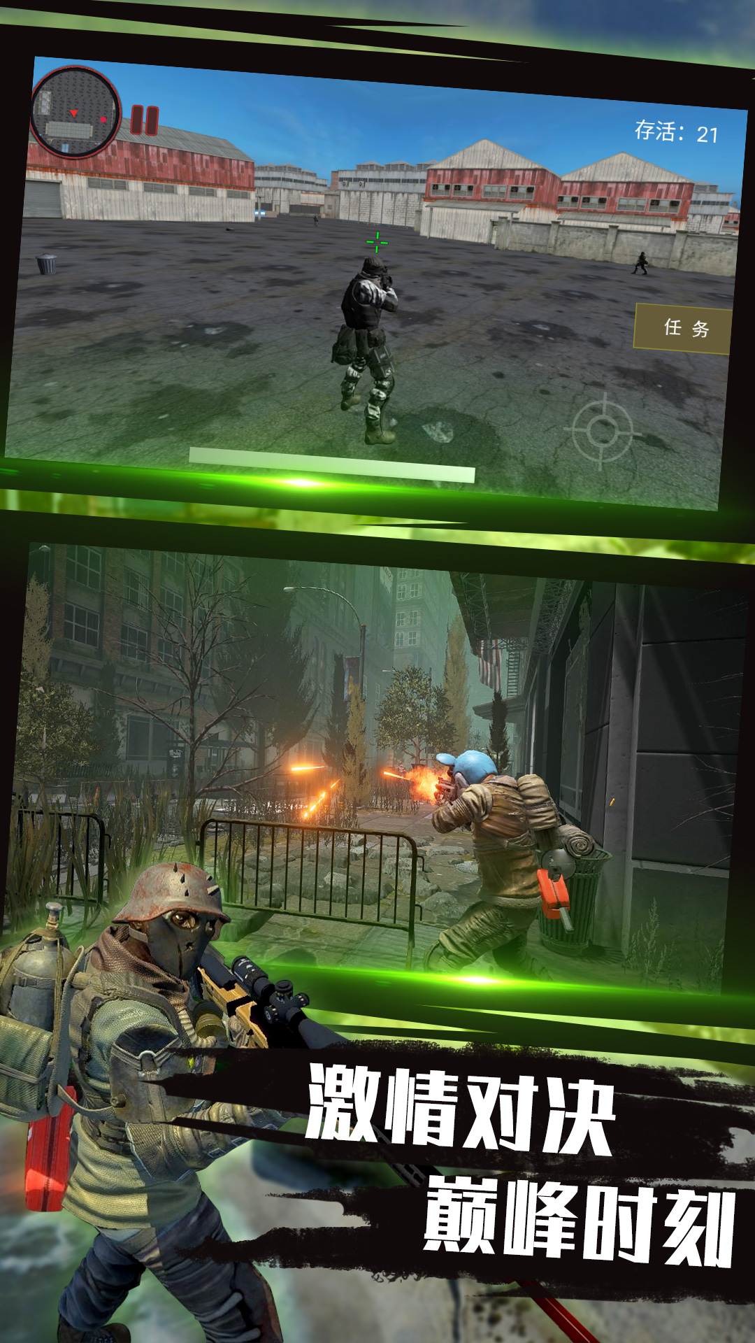 1、城市被敌人包围了,玩家需要通过不断地战斗消灭敌人,帮助自己逃脱出去。