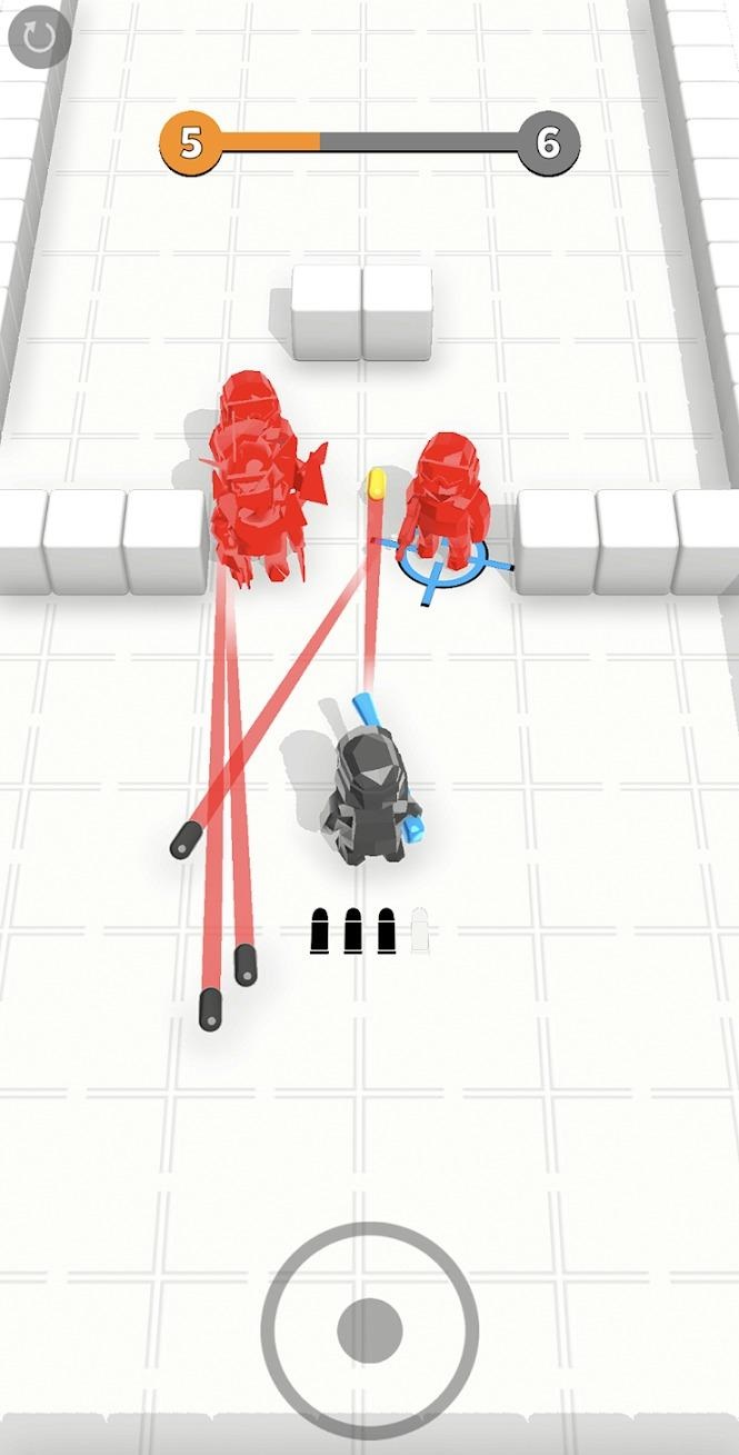 2、观察敌人的位置和子弹,灵活的躲避并向敌人射击;