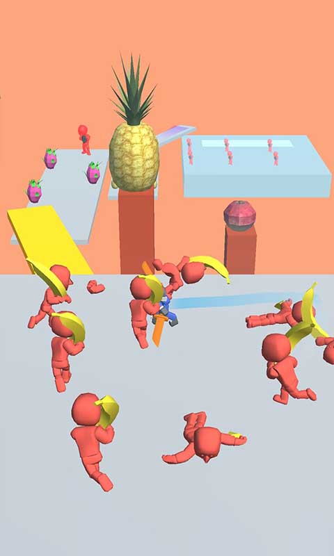 1、注意!水果化身成了水果人,带着一些还没有进化的水果向你发起了攻击。