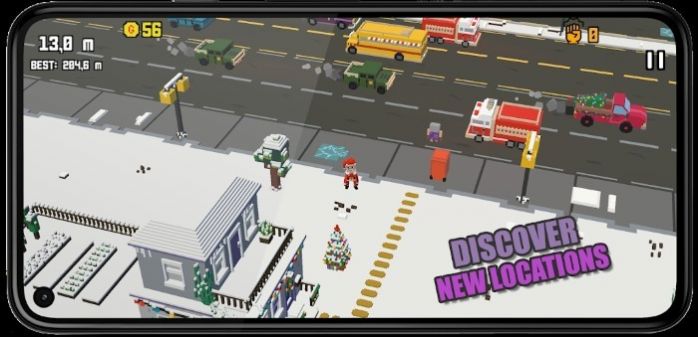 1.游戏采用45度俯瞰角的3D像素绘画风格,让玩家在简单的过马路场景中找到丰富的乐趣;