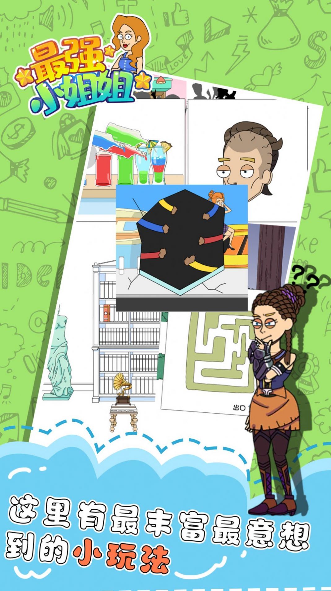 最强小姐姐这款游戏主要是冒险解谜类型的,游戏非常的考验玩家的脑洞,游戏中的关卡和任务非常的多,每一个关卡和任务都不一样,但是每一个都非常好玩,玩游戏的途中可以让玩家脑洞大开,搞笑的画风加上魔性的玩法,给很多玩家都带来了足够多的欢乐,完成任务的速度越迅速,获得的积分也是越高的。