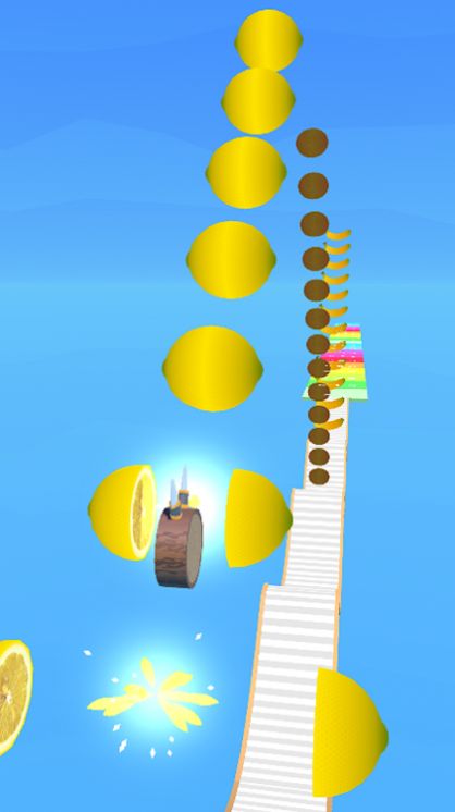 2、控制着水果刀切断各种阻碍,让前进的道路更顺,非常的有趣;