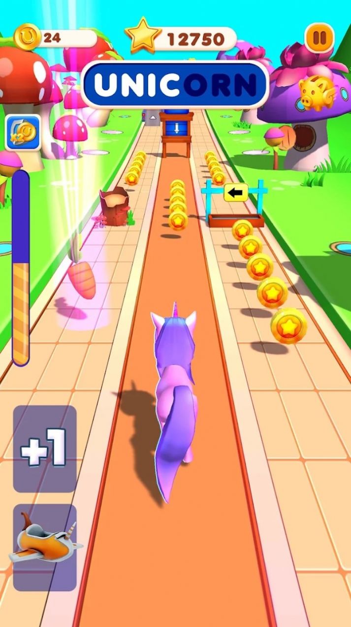 1、你可以收集更多的游戏道具来让自己的独角兽可以跑着更远。
