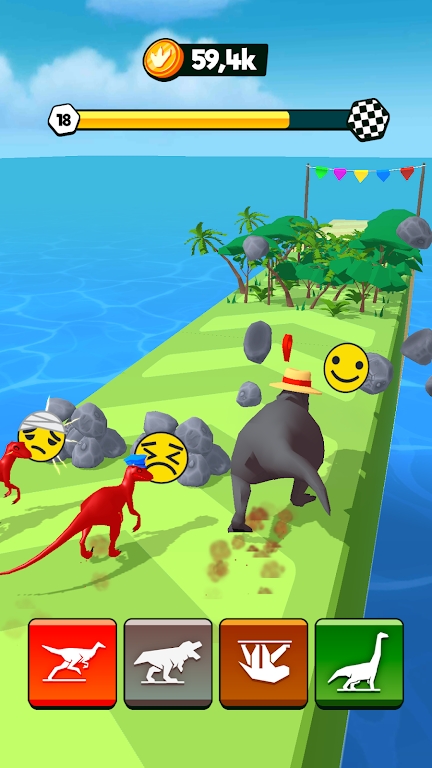 游戏中玩家需要灵活的操控自己的恐龙,躲避所有的障碍才可以安全的抵达终点获取胜利。